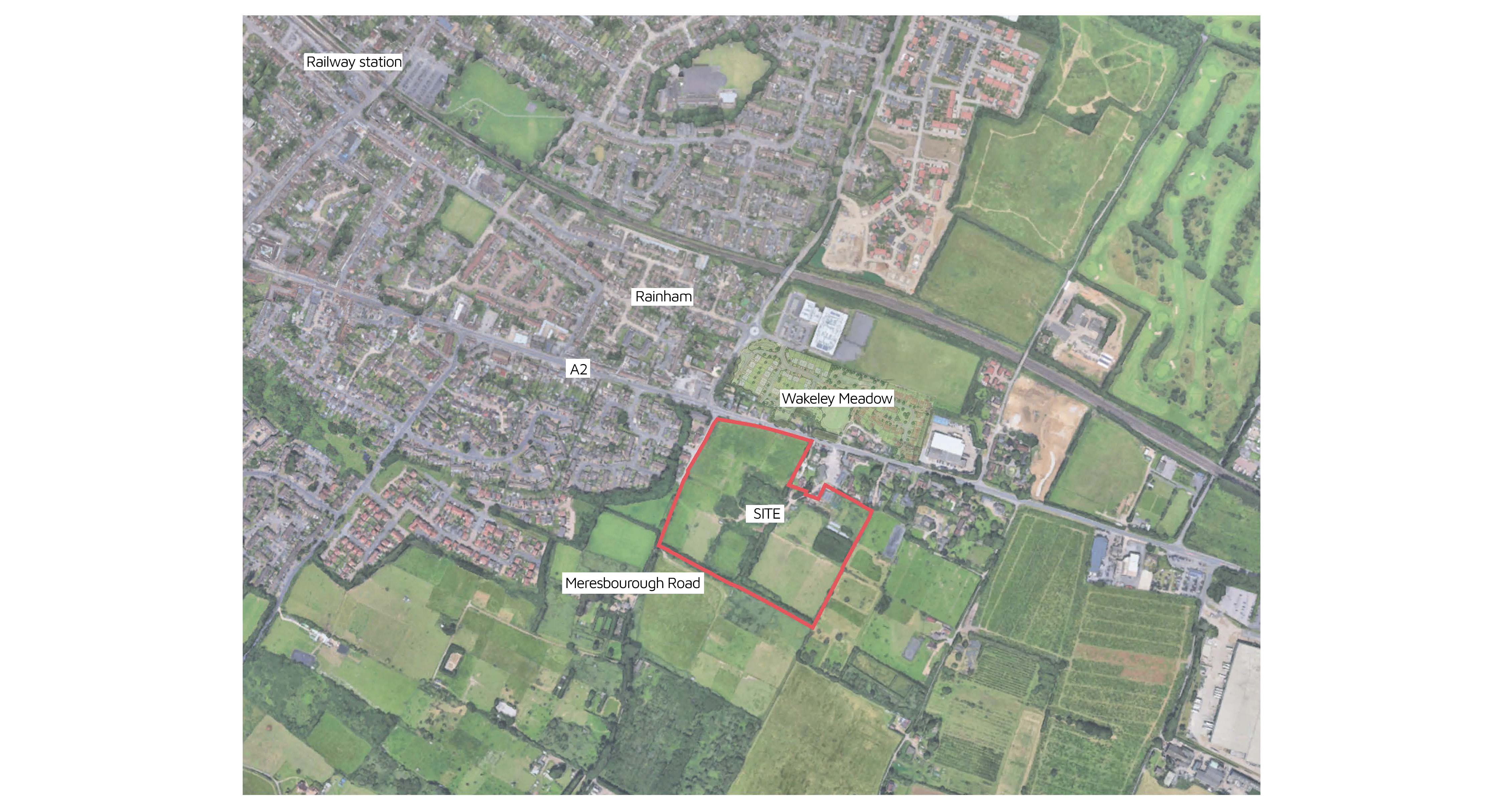 The Site is located adjacent to the eastern edge Rainham, immediately south of Moor Street, which provides a direct connection to the A2, and immediately east of Meresborough Road. To the north of the Site is the Bellway Homes development “Wakeley Meadows” which is currently under construction.